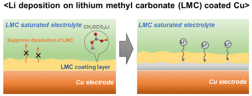 Lithium methyl carbonate (LMC) is synthesized in a single step and investigated as a coating material for Li protection. The LMC layer can be formed in situ during Li plating on Cu foil. The chemical and crystal structure of the ∼1 μm thick coating is confirmed, which remains intact during lithium cycling. SEM also confirms the dissolution of the LMC layer after being transferred into the commercial LiPF6-carbonate electrolyte. Presaturating the electrolyte with LMC powder prevents the dissolution of the LMC coating layer, which improves the Li plating/stripping Coulombic efficiency from 90.5% (bare Cu in commercial electrolyte) to 96.1% at 0.5 mA cm–2 and 1 mAh cm–2.