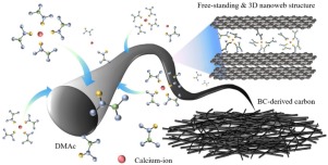 As promising candidates for next-generation batteries, calcium-ion batteries (CIBs) have attracted significant attention because of the lower cost and improved environmental friendliness of Ca metal relative to those of Li and their potential to deliver higher energy densities. However, their practical application has been limited by the lack of an appropriate electrode that can induce fast Ca co-intercalation/deintercalation reactions while providing longer cycle life. In this study, we report bacterial cellulose (BC) with a highly graphitic-like ordered structure as a new and efficient co-intercalation host for multivalent Ca ions. The free-standing BC electrode with unique 3D porous morphology possessed ultra-fast co-intercalation kinetics, much faster than that for a commercial graphite electrode. In addition, we addressed the controversial issue of whether Ca co-intercalation truly occurs in the graphitic layer. It is demonstrated that the co-intercalation is directly dependent on the degree of carbon crystallinity by using various BC electrodes with different crystallinities at regular intervals. Finally, the effect of the ordering of the carbon stacking layer on the co-intercalation chemistry was electrochemically investigated.