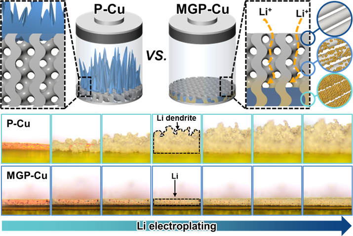 Dendritic challenges in Li metal batteries are commonly resolved using porous three-dimensional (3D) current collectors, which have a significant issue in that Li is deposited from the top (top growth) of the structure rather than from the bottom (bottom growth), failing to effectively suppress dendrite growth and volumetric expansion. We propose the structure incorporating a gradient lithiophilic seed within a 3D framework by pulse electroplating Mg, specifically targeting the near bottom, to promote bottom growth and achieve dense Li deposition. This method achieves precise control over the catalytic seed size and distribution. Optimal conditions for maximizing catalytic effect are identified. The resulting Mg-gradient porous-Cu structure exhibits superior Li-plating behavior with bottom growth, significantly reducing dendrite formation and improving cycle life. The mechanistic origin of bottom-guided Li growth is supported by DFT and 3D simulation results. This method presents a significant step forward in developing high-performance Li-metal batteries.