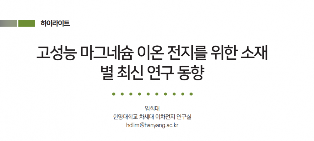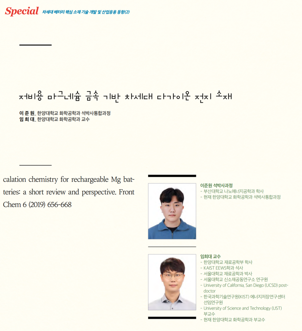 Publication of Research Papers and Press Release of Ceramic Korea and NICE(News & Information for Chemical Engineers) about Magnesium ion