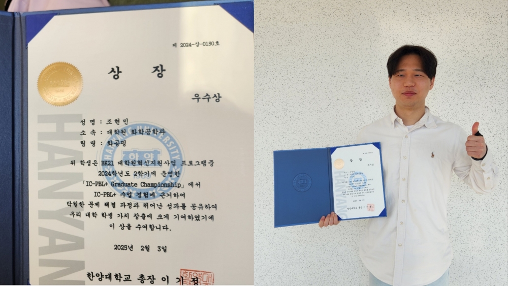 Hyeonmin won the Excellence Award at the IC-PBL+ Graduate Championship as part of the BK21 Graduate School Innovation Support Program.